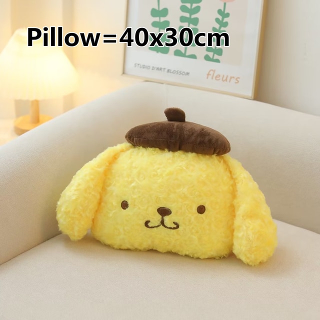 Hello Kitty Toys Sanrio Kawaii Pom Pom Purin Plush Toy Stuffed Animals Dog Soft Pillow Pompompurin Doll Cute Room Decor Anime Peluche Toy Gift Have fun playing with Pompompurin & get yourself a Pompompurin Plush buddy! Made by Sanrio , this kawaii male Golden Retriever loves hiding shoes and eating his mama's caramel cream pudding Product Details "Let's go out!" Pompompurin is a Sanrio golden retriever known for his yellow fur and signature brown beret